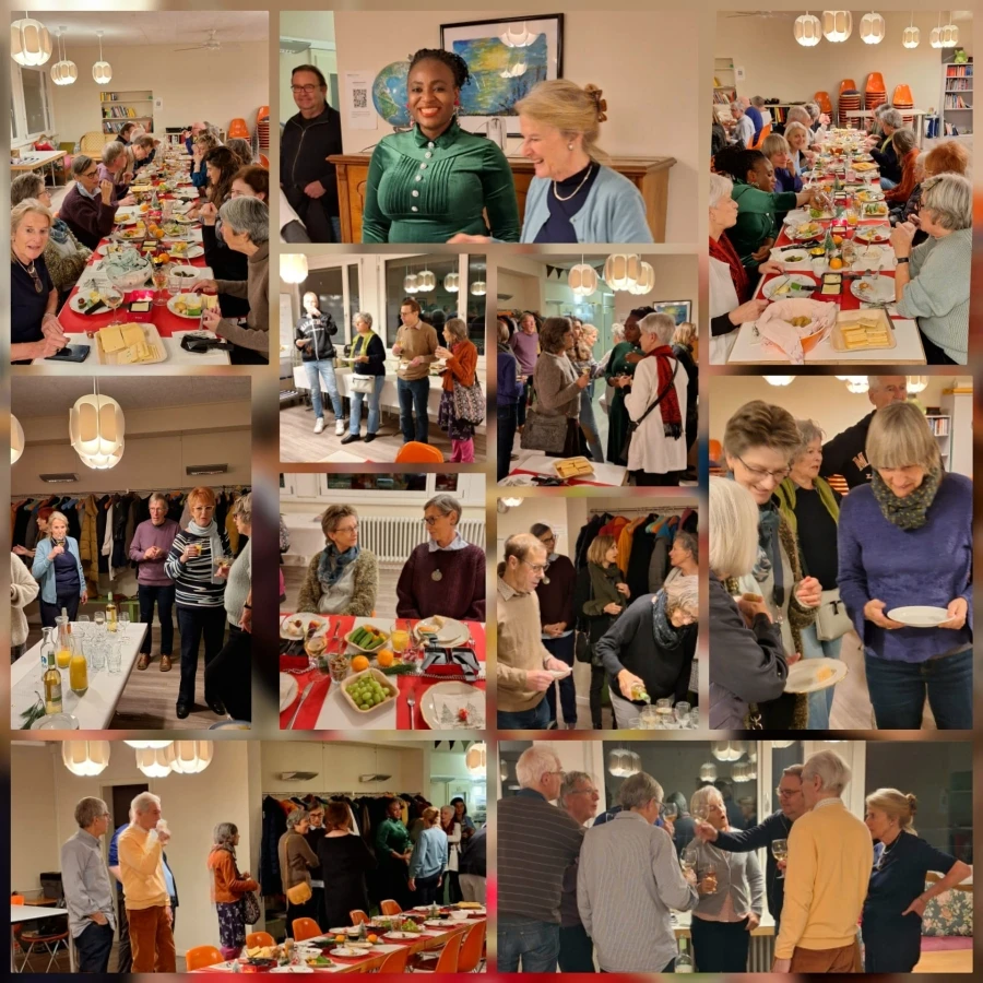 An festlich gedeckten Tischen, liebevoll dekoriert von Kirsten Schmidiger, bot sich die Gelegenheit, in ungezwungener Atmosphäre bei Raclette und Wein einander besser kennenzulernen und miteinander ins Gespräch zu kommen.